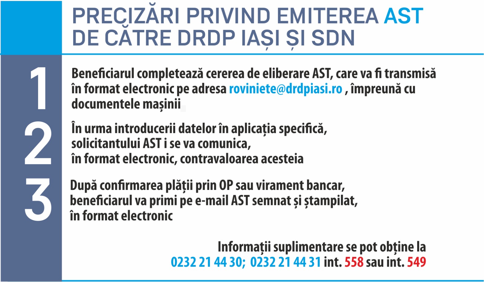 Precizări privind emiterea AST de către DRDP Iași și SDN,...